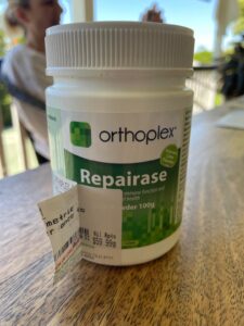I saw a patient the day before I went in for surgery who also swore by a product called Repairase which is concentrated Vitamin A and is recommended for wound healing and decreasing inflammation. I thought it sounded like a great idea, but I doubted I had the time to source it. Next thing, the patient arrives back at the rooms two hours later with a gift-wrapped bottle of Repairase. Her kindness and thoughtfulness brought a tear to my eyes.
