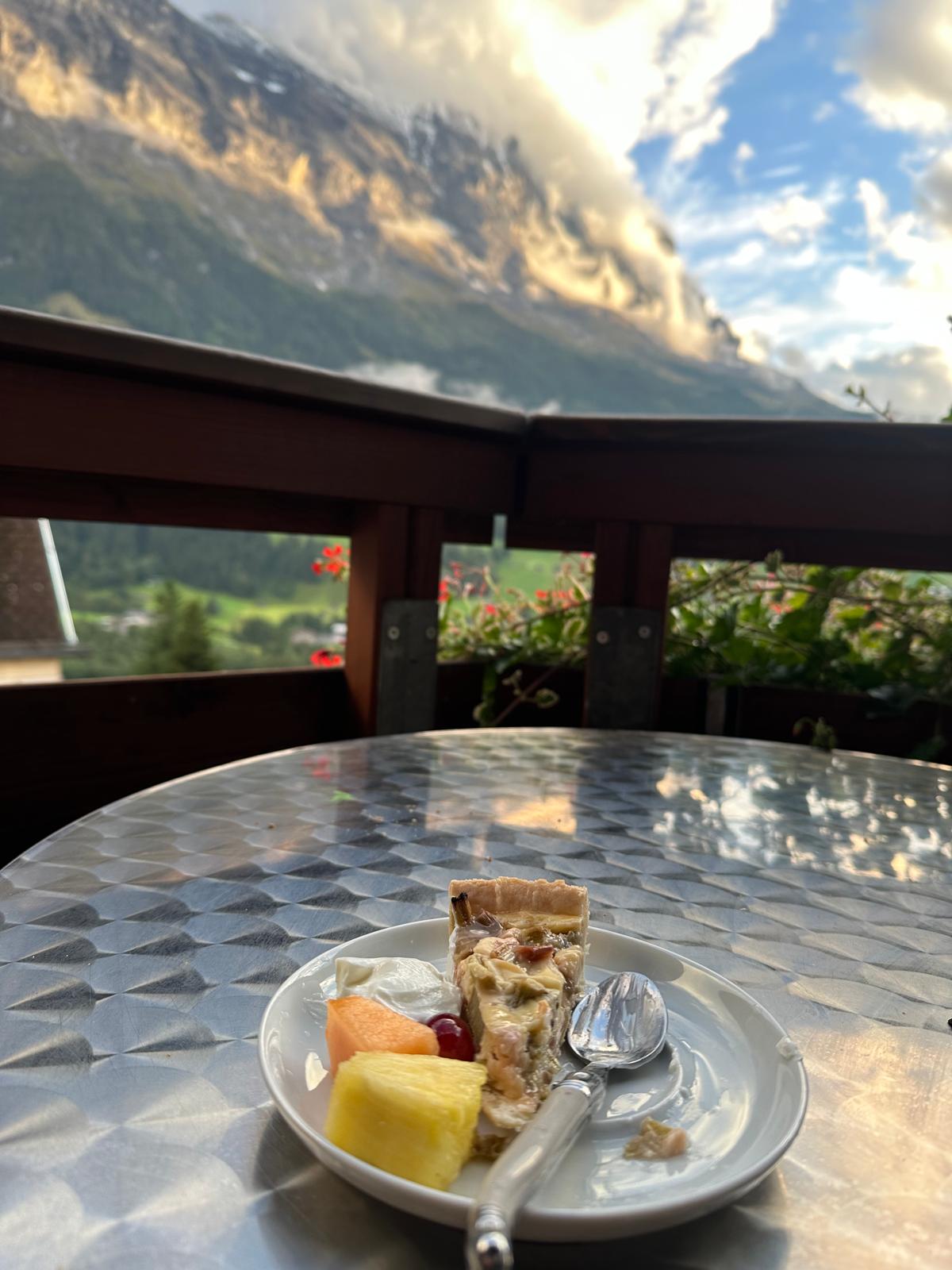 Grazing plate and a Cava (the Swiss version of Prosecco) for dinner on the verandah staring at the Eiger