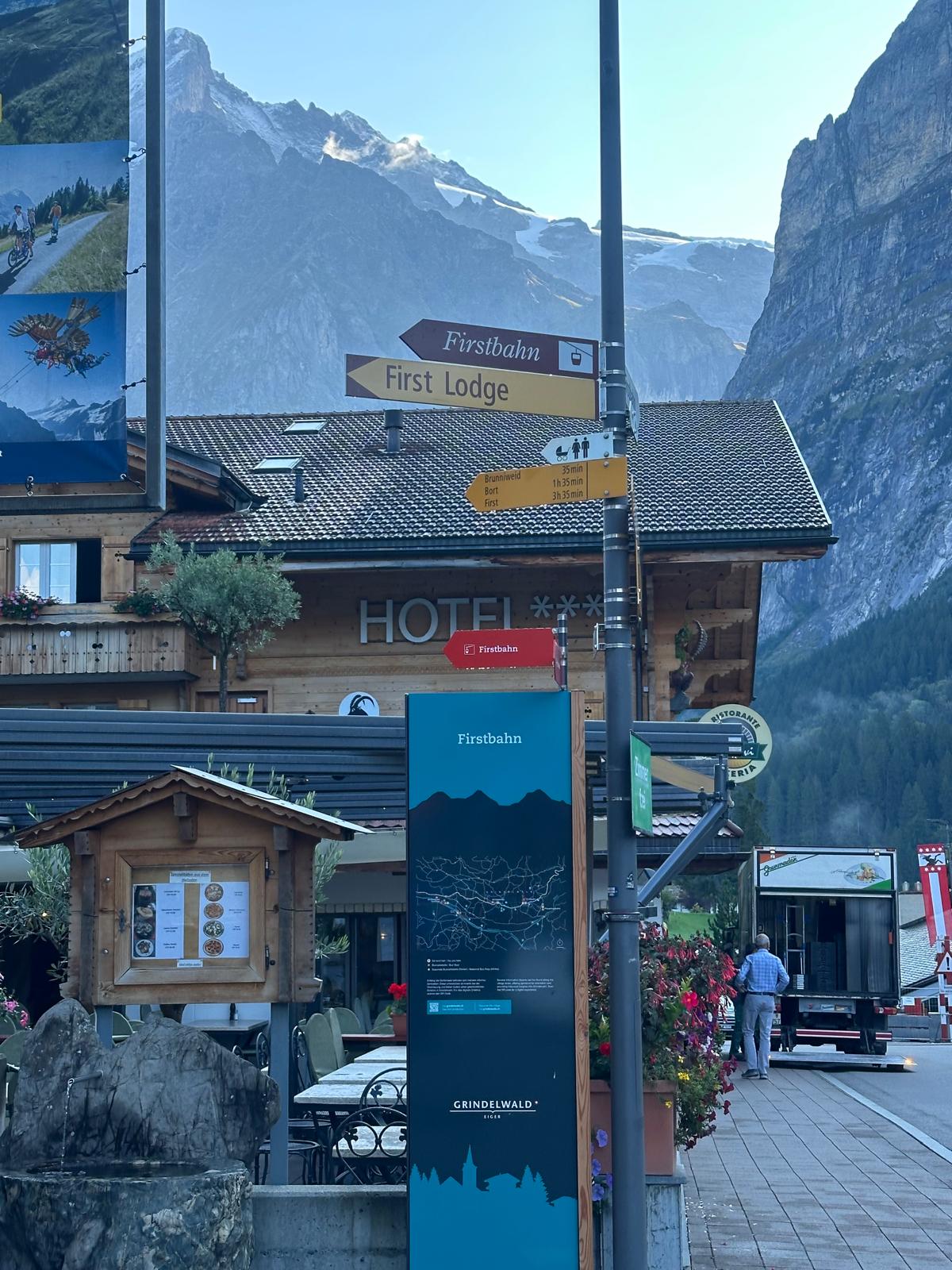 Sign to Firstbahn (or First Gondola) about 20 minutes walk from the Grindelwald train station and our hotel