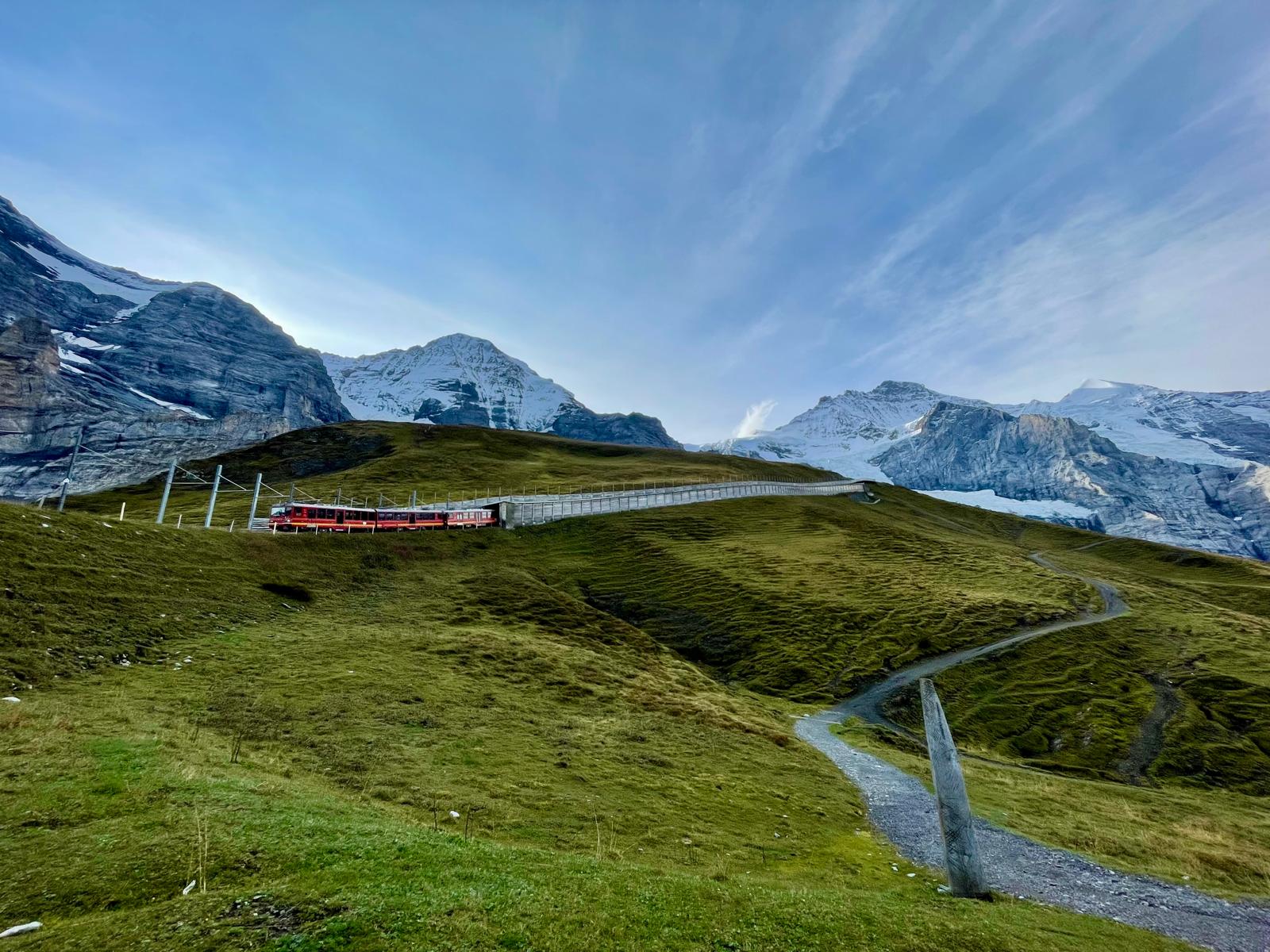 Just arrived at the top of the Eiger Glacier Station and heading down the track towards Kleine Scheidegg
