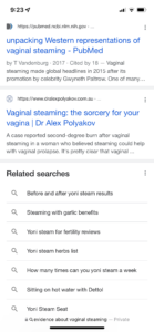 Some screenshots of googling Vaginal Steaming – it’s a little off-putting to say the least.