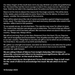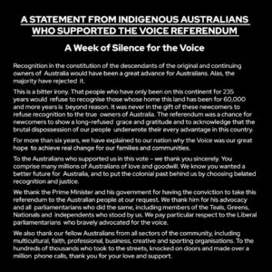 Below is their request from Indigenous Australians asking for a Week of Silence for The Voice.