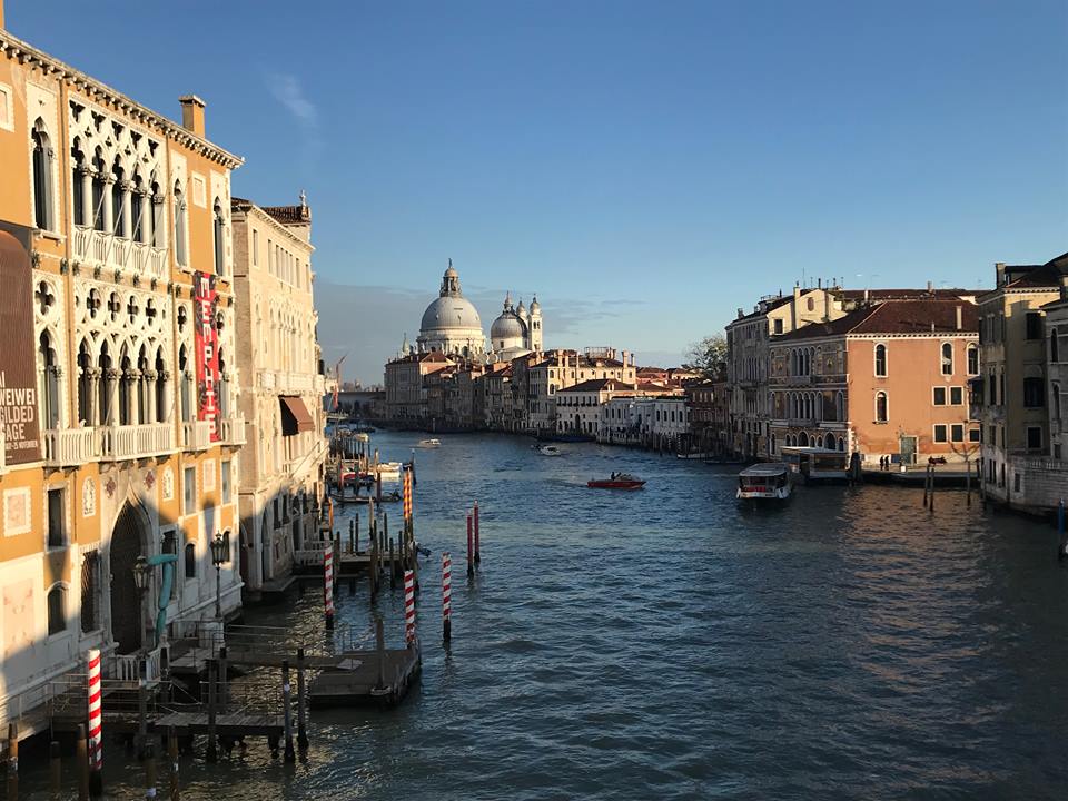 Our first stop this trip is Venice – it always amazes me that the big A380 passenger jets can deliver us into Venice. This year we were on the wrong side of the plane to see Venice as we were landing, but on our side we were pleasantly surprised to see the snow-capped Italian Alps. Bellissimo! We have come to Venice quite a few times over the years because every two years they have the Biennale Architettura which goes from May to the end of November and with Bob being an architect we go for his Professional Development. It’s a tough gig but he has to do it to keep his PD hours up! The other reason for this trip at this particular time is we have been married for 40 years in a couple of days and I reckon we both deserve a reward for that achievement.